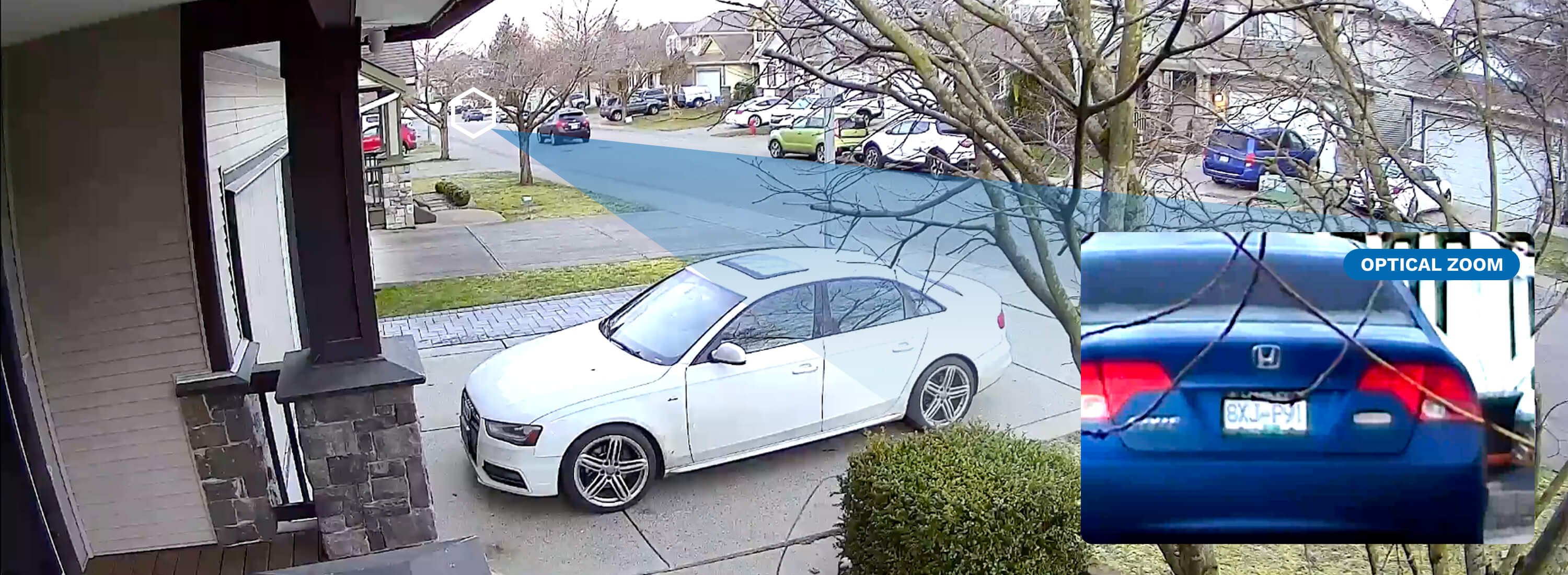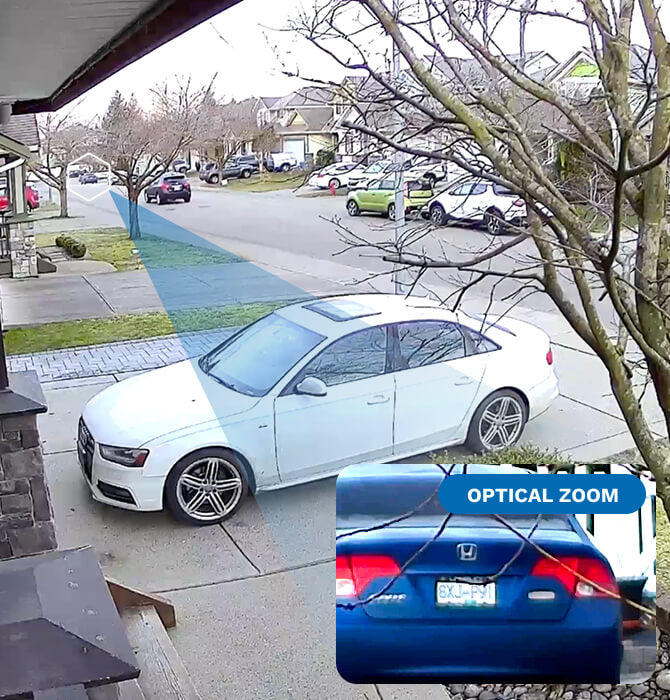 Zoom in like a telescope up to 650 feet, capturing crystal clear details like license plates or faces without losing any picture quality.
