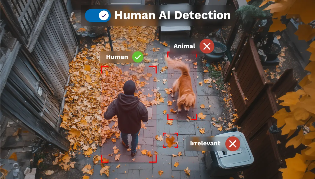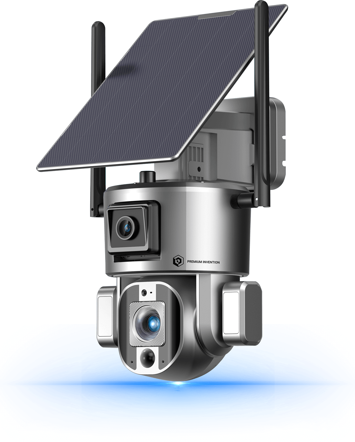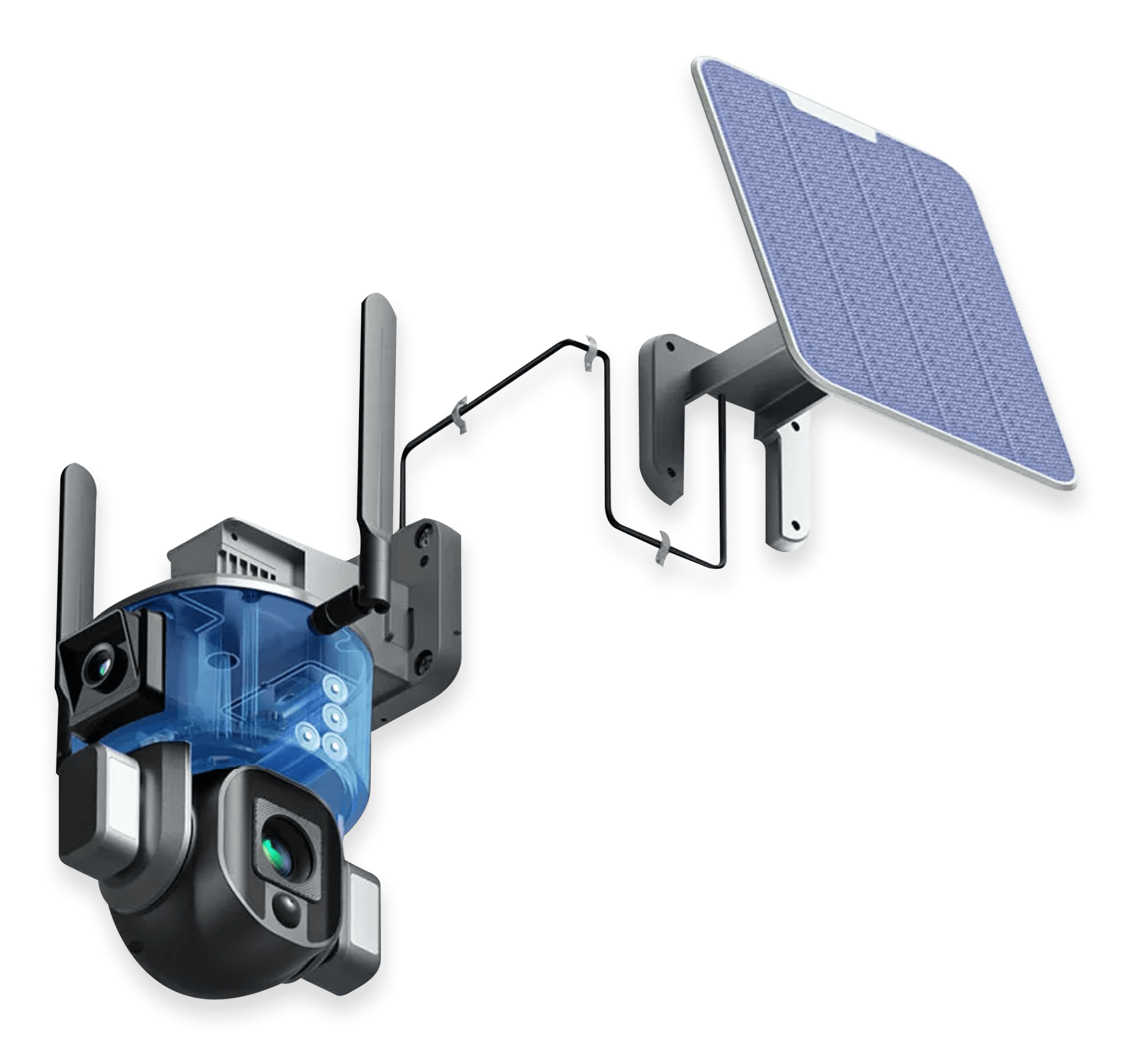 The top lens provide uninterrupted monitoring of the main area, while the bottom lens auto tracks movement in real time.